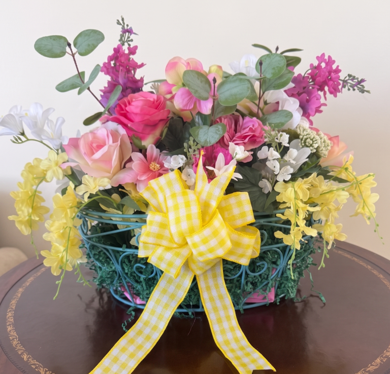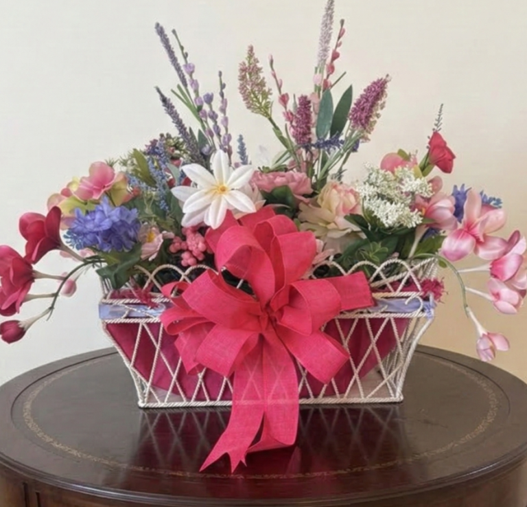 Meet The Susan — a masterfully designed white metal basket that serves as the ultimate focal point for your home. Brimming with a curated array of spring and summer blooms, it features a magnificent blend of deep purples, soft pinks, and crisp ivories. Whether you’re hosting Easter brunch, celebrating Mother’s Day, or simply elevating your daily dining experience, The Susan brings a breath of fresh air to any sideboard or table.