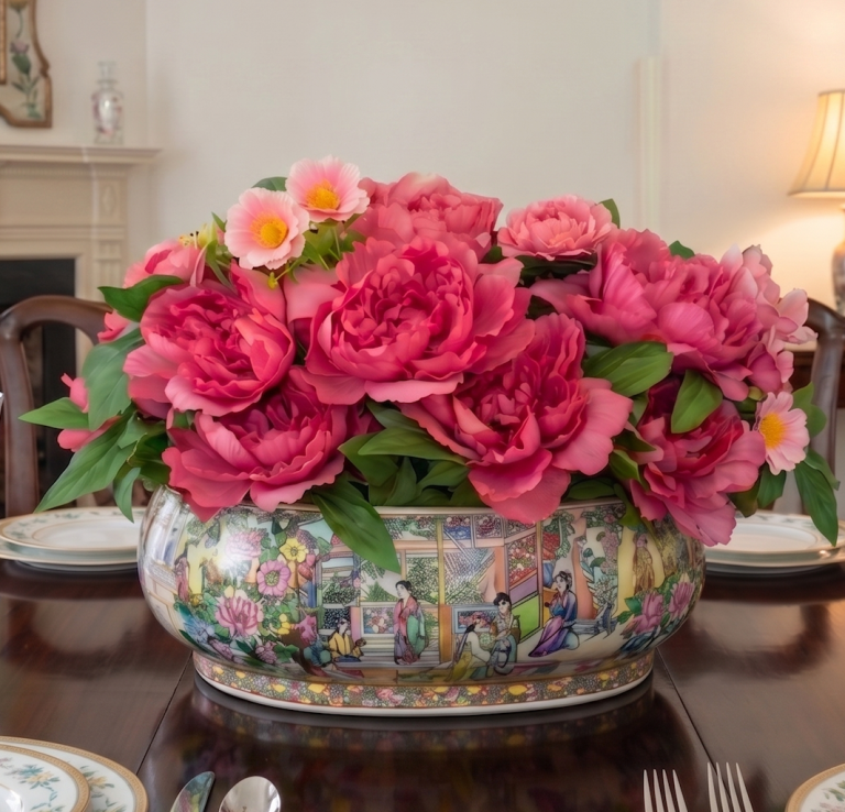 A perennial favorite, this cherished container recently came to life with an overflow of rose-colored blooms. Designed to evolve with the seasons, it brings a fresh, vibrant energy to the family dining room with every spring and summer reimagining.